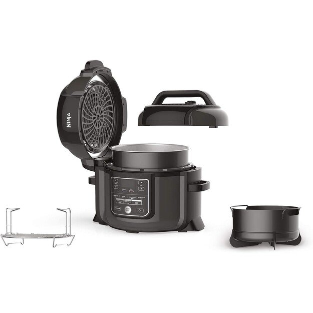 Greitai ir lengvai paruoškite gardžius pagrindinius patiekalus, garnyrus, užkandžius, desertus ir pilnaverčius patiekalus - nuo aštraus čili iki obuolių trupinių pyrago, šnicelio su bulvytėmis ir pilno grūdo duonos. Ninja Foodi daugiafunkcinėje kepsninėje viskas telpa į vieną puodą: gaminimas slėgiu, kepimas ore, lėtas gaminimas, grilinimas, pyragų kepimas ir skrudinimas, apkepimas ir troškinimas bei virimas garuose. Tai reiškia neribotas galimybes.