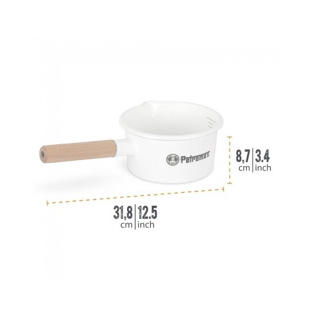 • Lengvi ir patvarūs indai gaminimui lauke• Atsparūs įbrėžimams, lengvai valomas paviršius• Gradavimas puodo viduje• visų tipų kaitlentėms, kepsninėms ar ruošimui ant laužo• Natūrali nuo karščio sauganti medinė rankenaSu Petromax emalio prikaistuviu gaminimas ne tik sukelia nostalgiją, bet ir tampa malonumu. Kelionėse po gamtą ar stovyklaujantTvirti emaliuoti indai yra idealus palydovas dėl savo mažo svorio. Medinė rankena veikia kaip natūrali apsauga nuo karščio. Tokiu būdu greiti užkandžiai ar gėrimai paruošiami akimirksniu. Dėka gradavimo prikaistuvio viduje, galite tiksliai išmatuoti skysčius. Paviršius atsparus įbrėžimams ir lengvai valomas. Petromax emalio prikaistuviai yra dviejų spalvų ir dviejų dydžių bei tinka visų tipų viryklėms ir atvirai ugniai.Specifikacijos:Svoris: 500gIlgis x plotis x aukštis: 8.7 x 31.5 x 18.5cm