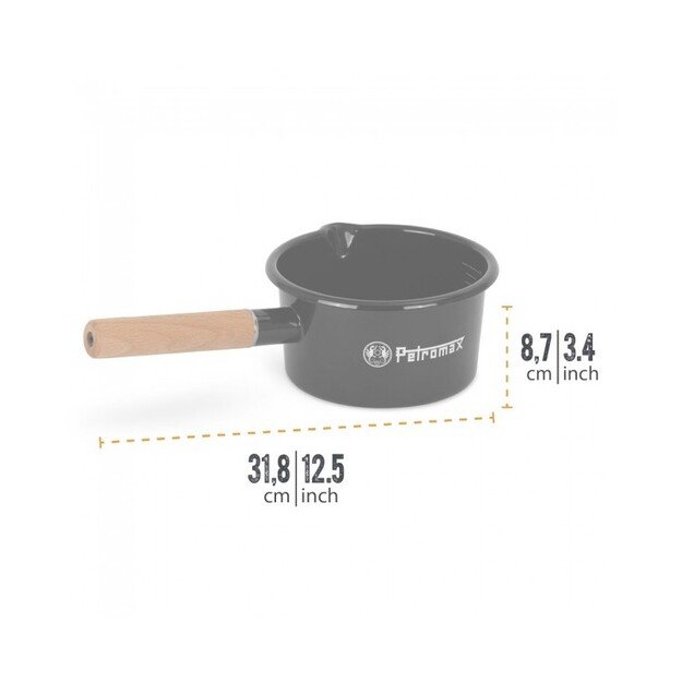 • Lengvi ir patvarūs indai gaminimui lauke• Atsparūs įbrėžimams, lengvai valomas paviršius• Gradavimas puodo viduje• visų tipų kaitlentėms, kepsninėms ar ruošimui ant laužo• Natūrali nuo karščio sauganti medinė rankenaSu Petromax emalio prikaistuviu gaminimas ne tik sukelia nostalgiją, bet ir tampa malonumu. Kelionėse po gamtą ar stovyklaujantTvirti emaliuoti indai yra idealus palydovas dėl savo mažo svorio. Medinė rankena veikia kaip natūrali apsauga nuo karščio. Tokiu būdu greiti užkandžiai ar gėrimai paruošiami akimirksniu. Dėka gradavimo prikaistuvio viduje, galite tiksliai išmatuoti skysčius. Paviršius atsparus įbrėžimams ir lengvai valomas. Petromax emalio prikaistuviai yra dviejų spalvų ir dviejų dydžių bei tinka visų tipų viryklėms ir atvirai ugniai.Specifikacijos:Svoris: 500gIlgis x plotis x aukštis: 8.7 x 31.5 x 18.5cm