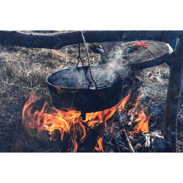 Petromax ketaus puodų kokybėDėl nuostabių ketaus savybių ir ypatingos paviršiaus struktūros šiluma yra efektyviai kaupiama ir paskirstoma. Petromax ketaus gaminiai yra gamykliškai paruošti ir padengi maistiniais riebalais, dėl to jie gali būti naudojami iš karto. Ketaus puodai gali būti naudojami virš laužo, krosnyse ar okraitėse, jie puikiai veikia ir ant indukcinių viryklių. Paaukštintas dangčio kraštas leidžia dėti žarijas ar anglis ir tiesiai ant ketaus puodo.Apgalvotas dizanas universalumuiPetromax ketaus puoduose viskas apgalvota iki smulkiausių detalių kas leidžia pilnai išnaudoti visas puodo galimybes kepant kuo daugiau skirtingų receptų ir metodų. Ketaus galima saugiai pakelti dėl tvirtos rankenos, trys kojelės suteikia stabilumo, o termometro anga leidžia patikrinti temperatūrą nepakeliant dangčio. Kai reikia, karštą dangtį galima pakelti ypač lengvai su Petromax dangčio pakelėju. Dar viena ypatybė – apverstą dangtį galima naudoti ir kaip keptuvę.Galimi įvairių dydžių ir gali būti komplektuojami su praktiškais priedaisPetromax ketaus puodui galima įsigyti ir kitų priedų: dangčio pakėlėją, transportavimo ir laikymo krepšį, priežiūros ir ketaus valymo reikmenis. Be to, siūlome specialiai ketaus puodui skirtas ir ketaus groteles dedamas ant dugno, kurios leidžia virti ir kepti maistą nieko nesudeginant.Techniniai duomenysMedžiaga: ketusSvoris: apytiksl. 8.8 kgSvoris supakuotas: apytiksl. 9.4 kgPuodo talpa (maks.): 5,5 lDangtis (maks.): 1.5 lIšoriniai matmenys (A x P x G): 16 x 36.4 x 31.2 cmSkirta 4.8 žmonėms