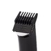 - Komplekte su antgaliu: platus trimeris plaukams kirpti (3–12 mm), siauras trimeris, skirtas kirpti barzdą / ūsus, mini skustuvas, trimeris garbanotiems ir detaliems kirpimams, plaukams iš nosies ir ausų pašalinti, stovas laikymui ir įkrovimui.