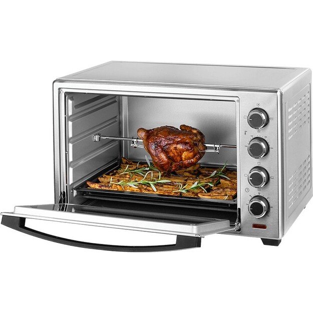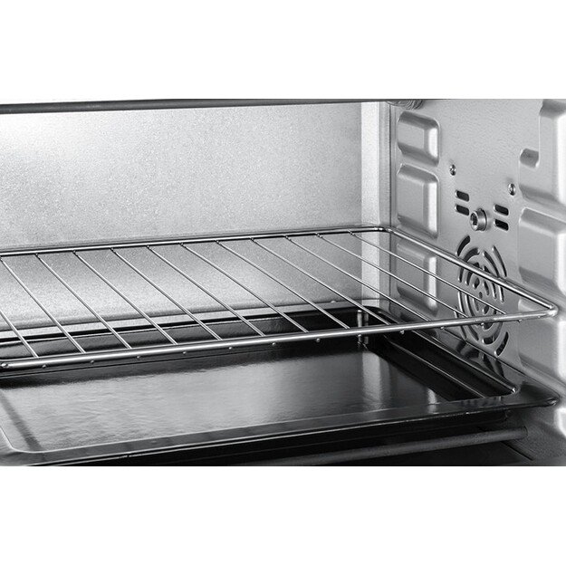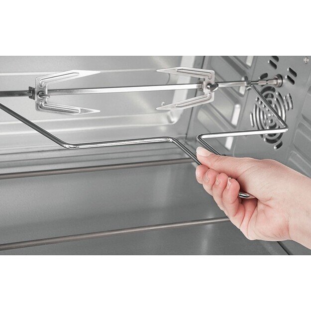 - 4 nustatymų režimai orkaitei ir iešmo režimas: viršutinės dalies kaitinimas, apatinės dalies kaitinimas, viršutinės ir apatinės dalių kaitinimas, išjungta