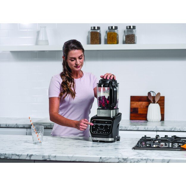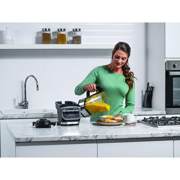 Maišydami ir gamindami vienu metu galite greitai ir lengvai gaminti karštus ir šaltus gaminius su šiuo 2 viename Ninja maišytuvu. Mėgaukitės ne tik sriubos gamintoju, bet ir įvairiais gardžiais maisto ir gėrimų įvairove – nuo sodrių ir lygių sriubų, makaronų padažų ir naminių uogienių iki gardžių desertų, šaldytų kokteilių ir kokteilių.