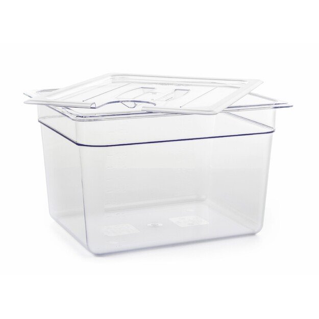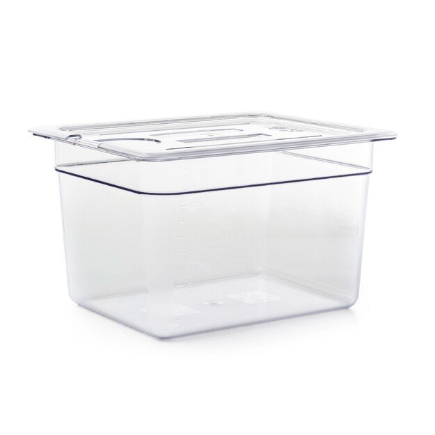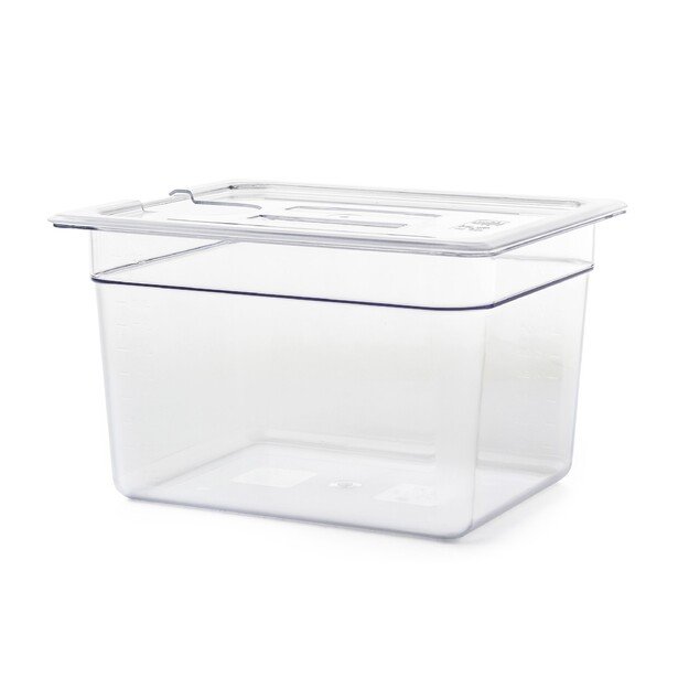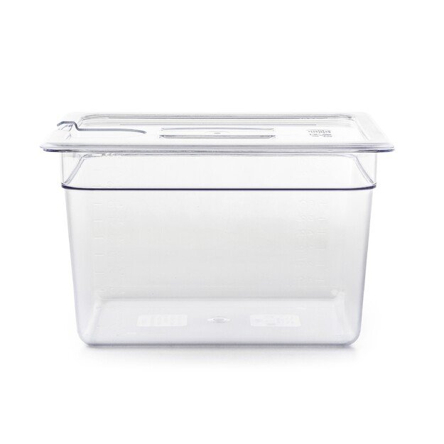 G21 sous-vide kepimo indas pagamintas iš itin atsparaus polikarbonato ir, lyginant su metaliniais puodais, efektyviau palaiko temperatūrą ir užtrunka mažiau laiko įkaitinti vandens vonią. Polikarbonatas atitinka griežčiausius saugos reikalavimus ir nekenkia sveikatai. Dėl didelio naudojamos medžiagos stabilumo indą galima plauti indaplovėje , o tai sutaupys daug laiko ir pastangų valant. Be to, inde yra nuimamas dangtis su išpjova sous-vide viryklei . Tačiau dangtį galima naudoti ir su kitos firmos virykle, nes į skylę tilps dauguma rinkoje esančių viryklių.