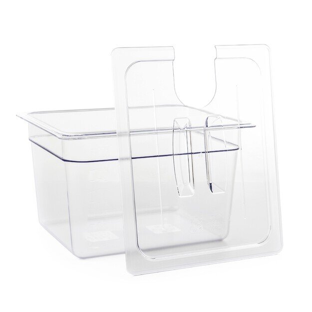 - 12l talpos indas, skirtas Sous Vide gaminimo būdui, apsaugo nuo vandens išgaravimo, padeda geriau palaikyti temperatūrą ir apsaugo nuo nepageidaujamų šilumos nuostolių, indą galima plauti indaplovėje. P