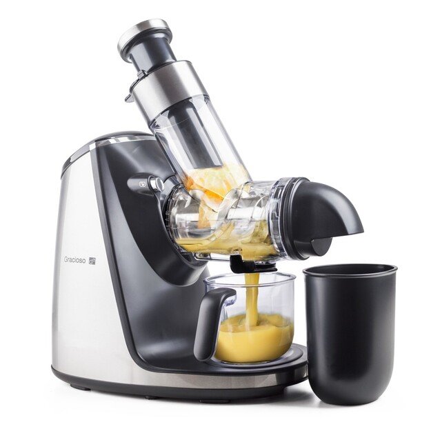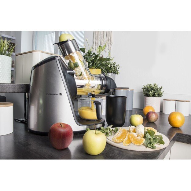Sulčiaspaudė G21 Gracioso yra daugiafunkcis superherojus, kuris padės jums paruošti sveikas sultis iš visų rūšių vaisių ir daržovių. Šviežiai išspaustos sultys, pagamintos jūsų virtuvėje iš aukščiausios kokybės ingredientų, yra vienas iš geriausių dalykų, kuriuos reikia padaryti visos jūsų šeimos sveikatos gerovei.