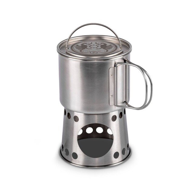 Petromax universalų puodelį mėgstamiausiam gėrimui gerti arba kaip puodą maistui ruošti. Tai reiškia, kad esate pasirengę savo nuotykiams gamtoje ir nereikia vežtis papildomo bagažo. Su tokiu puodeliu lengva įrengti maisto gaminimo vietą, apsaugotą nuo vėjo ir drėgmės. Talpykloje pakanka vietos nedidelėms malkoms, anglims ar bet kokiam kitam įprastam kurui. Jį galima sudėti ir net pripildyti kitais daiktais, pavyzdžiui, malkomis ar vandens buteliuku, kad sutaupytumėte vietos kuprinėje.Tūris: 750 ml.Matmenys: 10 x 11.5 x 11.5 cmSvoris: 312 g.